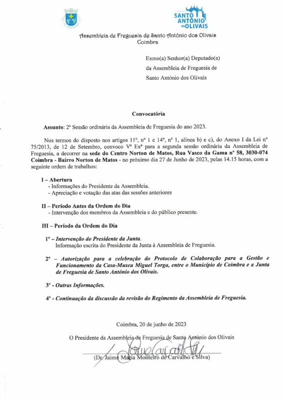 NotíciasConvocatória – 2ª Sessão Ordinária da Assembleia de Freguesia do ano 2023 22 Jun Convocatória – 2ª Sessão Ordinária da Assembleia de Freguesia do ano 2023 “Substituição de juntas de dilatação no nó da Boavista” – Condicionamentos de trânsito Edital: Contratos Interadministrativos de Delegação de Competências (2023)