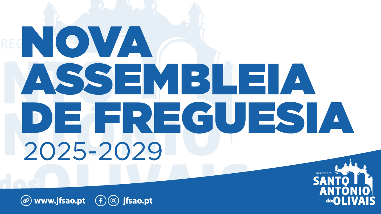 O ato de instalação da nova Assembleia de Freguesia de Santo António dos Olivais para o mandato 2025/2029, e a eleição dos vogais da Junta de Freguesia e dos elementos da mesa da Assembleia de Freguesia decorrerão no próximo dia 29 de Outubro, quarta-feira, pelas 15:00 horas, no Salão Nobre do edifício-sede da JFSAO.