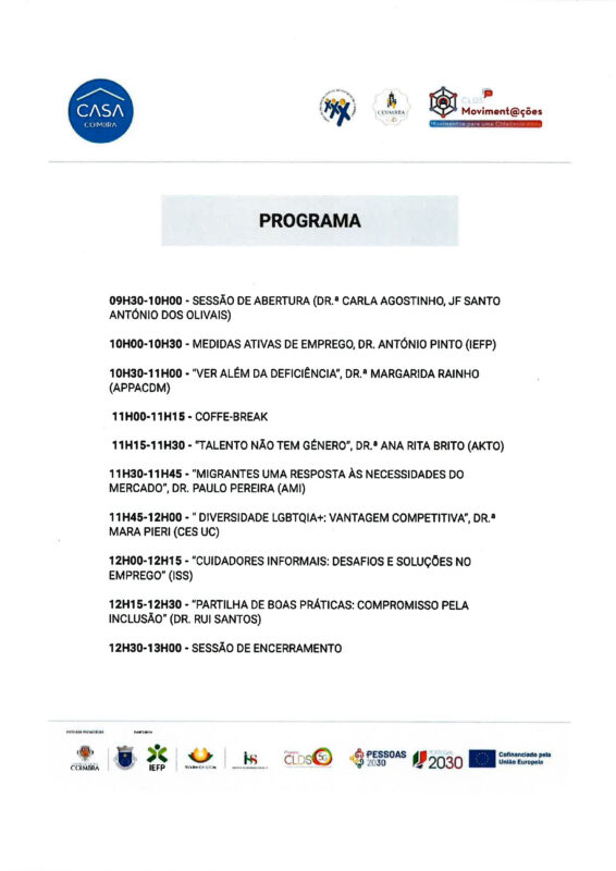 Integra o Plano de Ação da Comissão Social de Freguesia de Santo António dos Olivais para o ano de 2026, aprovado na reunião alargada de dia 30/01/2026, a realização da sessão “EMPREGO PELA INCLUSÃO: TALENTO, DIVERSIDADE E COMPROMISSO”, dinamizada pela Equipa do CLDS 5G.